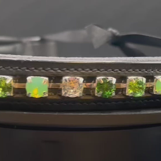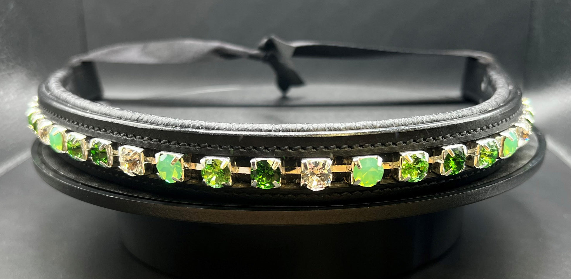 Looking for a Spring Fling? Check out this sparkling beauty! Genuine black leather padded browband with hand sewn sparkling rhinestones.