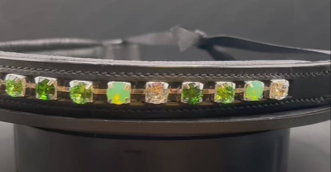 Each browband is made of genuine leather & padded for your horse's comfort. I hand sew high quality beads/stones in place creating a custom, handcrafted item that will make you stand out on the trail or show ring.